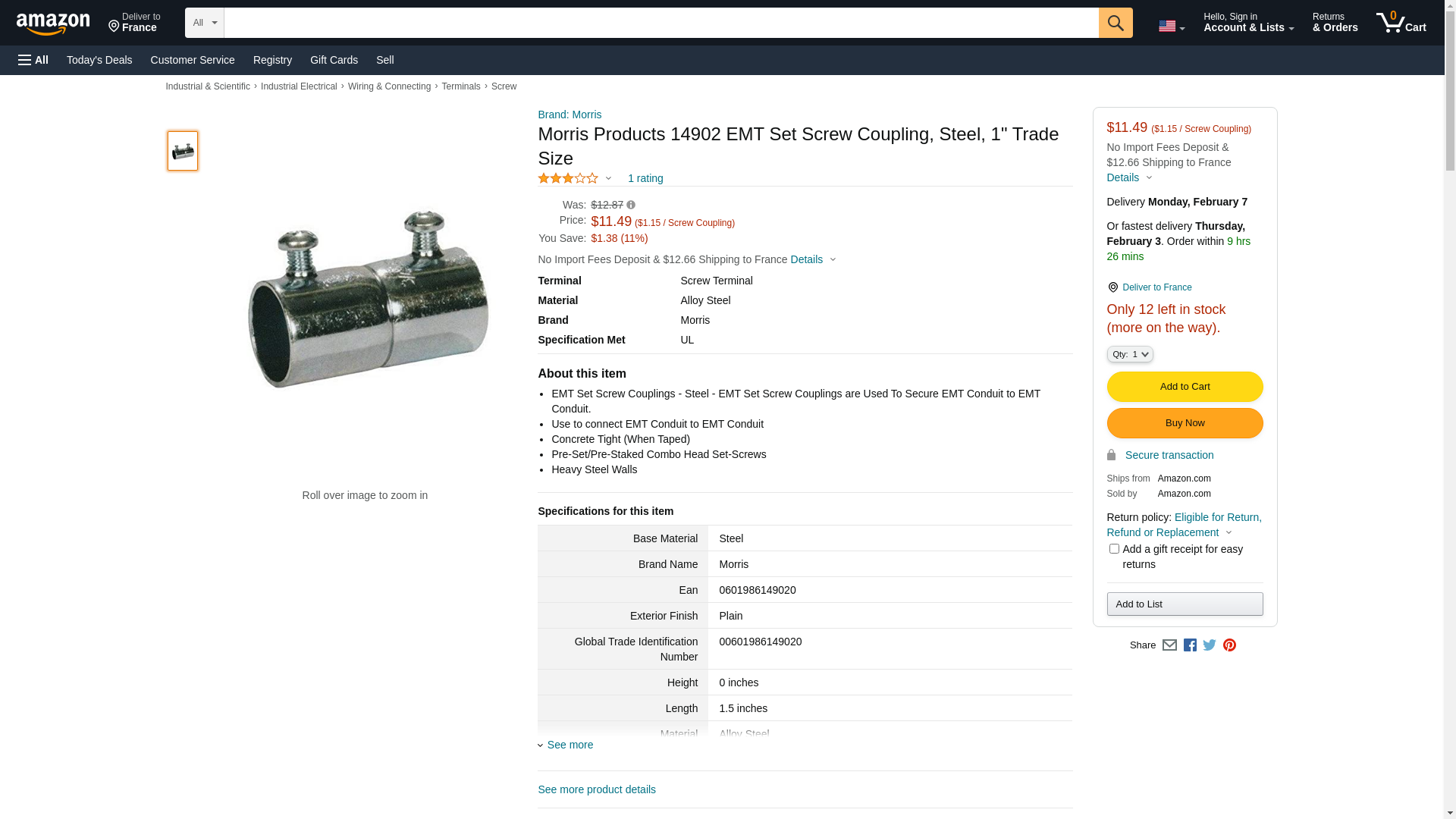 Morris Products 14902 EMT Set Screw Coupling, Steel, 1" Trade Size (Pack of 10). EMT Set Screw Couplings - Steel - EM...