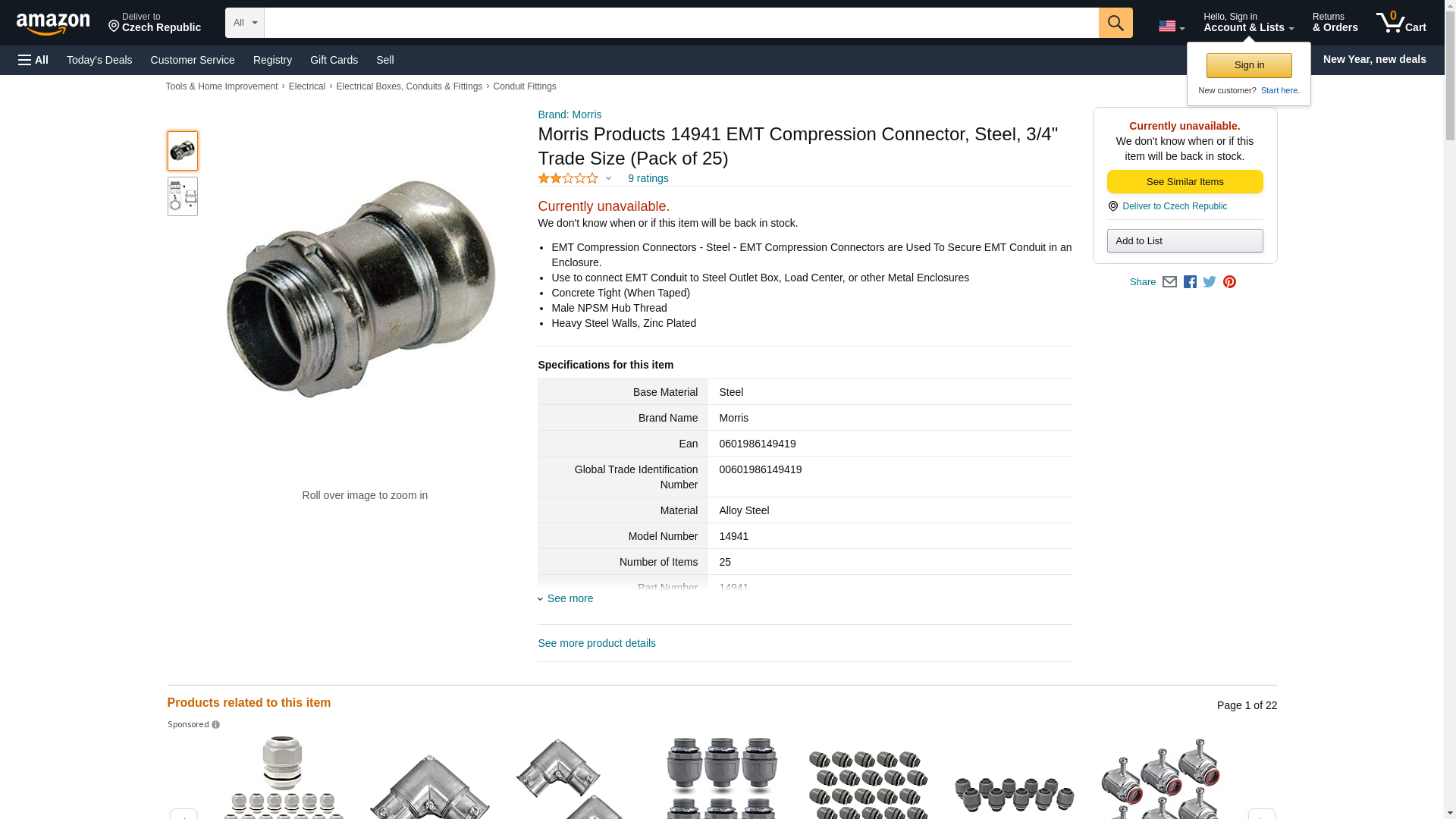 Morris Products 14941 EMT Compression Connector, Steel, 3/4" Trade Size (Pack of 25). EMT Compression Connectors - St...