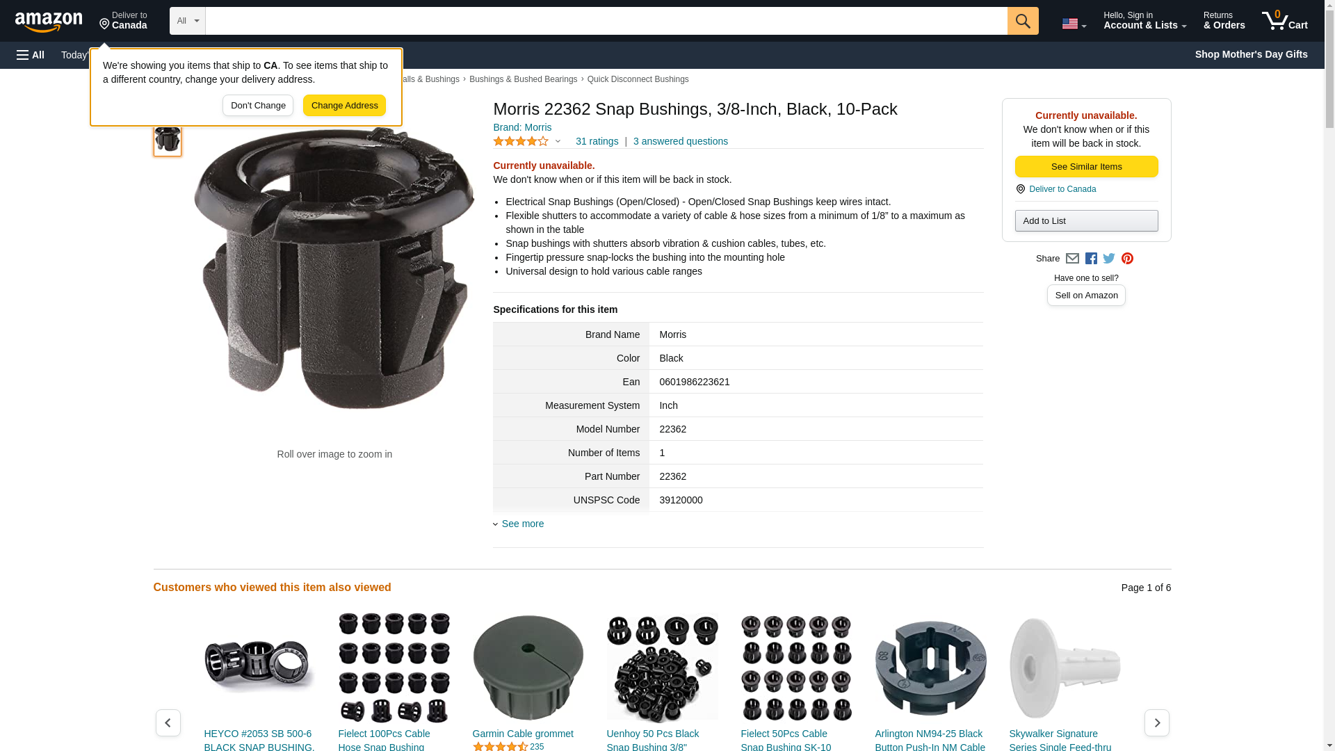 22362 Features: -0.42'' Open / closed snap bushings. -Keep wires intact. -Protect wires, tubing from sharp / uneven drilled and punched metal holes with smooth plastic chassis. -0.13'' Maximum steel thickness. -Finger tip pressure snap-locks the open / closed snap bushing into the mounting hole. -Can be applied where cables are already installed. Product Type: -Grommet. Connector Gender: -Female. Generic Specifications: -Made from nylon 6/6, 94V-2. Dimensions: Overall Height - Top to Bottom: -0.38". Overall Width - Side to Side: -0.42". Overall Product Weight: -0.01 lbs.