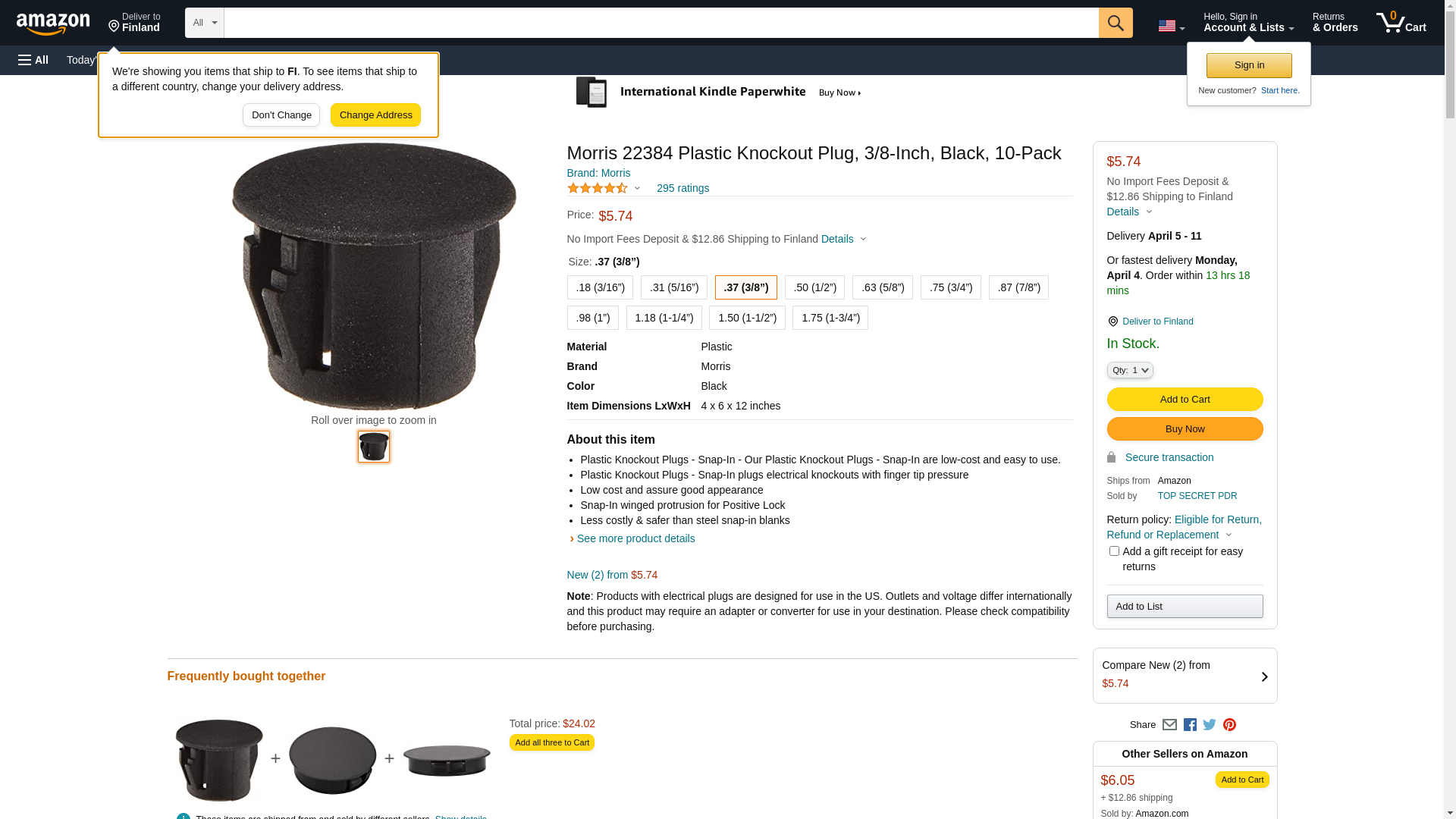 Morris 22384 Plastic Knockout Plug, 3/8-Inch, Black, 10-Pack