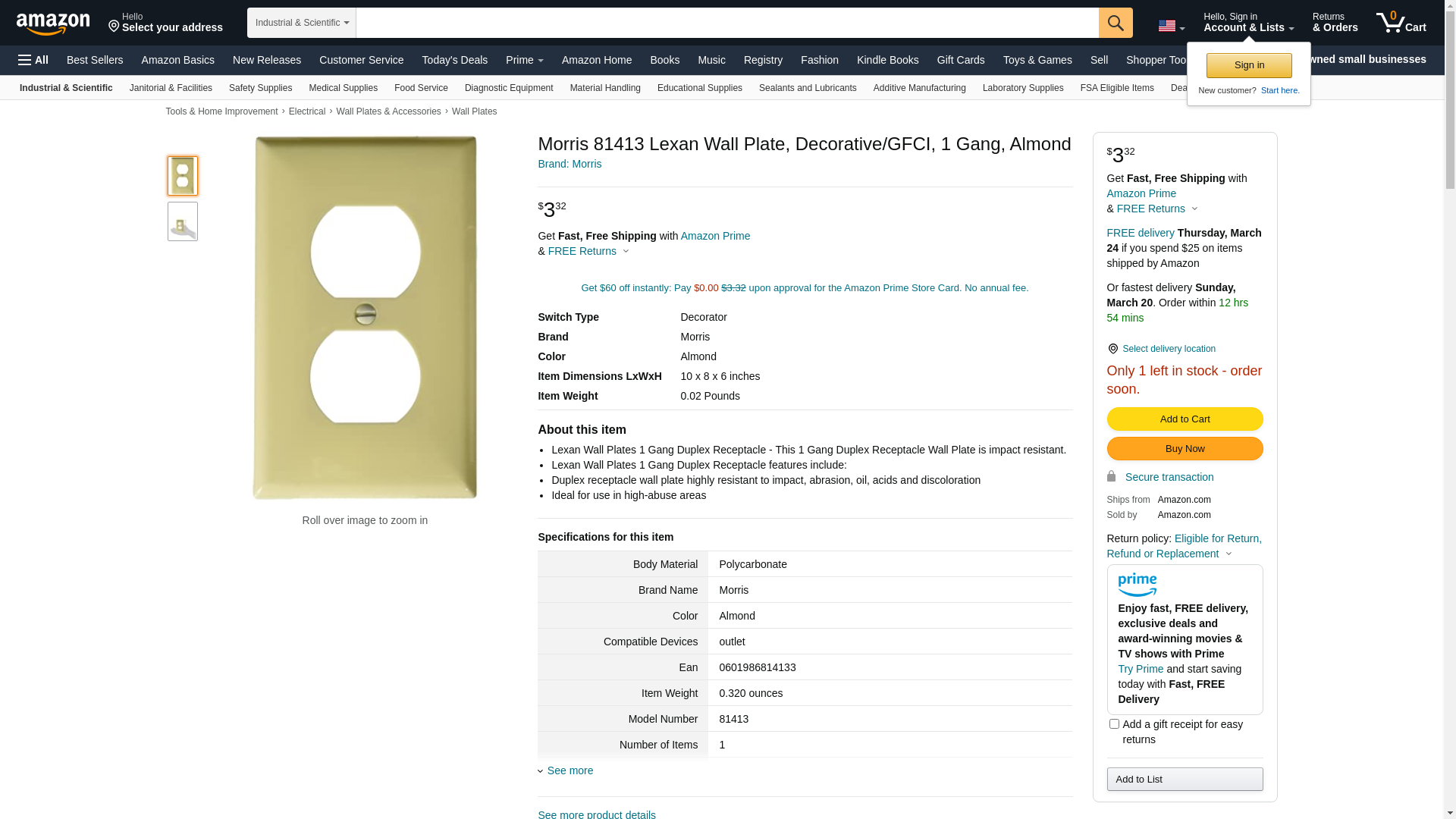 Morris 81413 Lexan Wall Plate, Decorative/GFCI, 1 Gang, Almond
