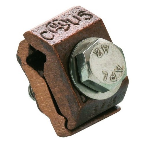 3/8" Rebar Ground Clamp with Lay-In Features: Connect Ground Electrode Conductor to Bare Rebar Rugged and Compact Lay-In Feature for Use on Continuous Ground Loops Popular for Swimming Pool/SpasTelecommunications Agriculture Marine and Food Processing Applications Stainless Steel Hardware Cast of High Strength Conductivity Copper alloy For Copper Conductors only Direct Burial marked on clamps Approved for Direct Burial in Soil and Concrete UL467 Direct Burial and Grounding/Bonding Applications cULus Not for use on Epoxy Coated Rebar