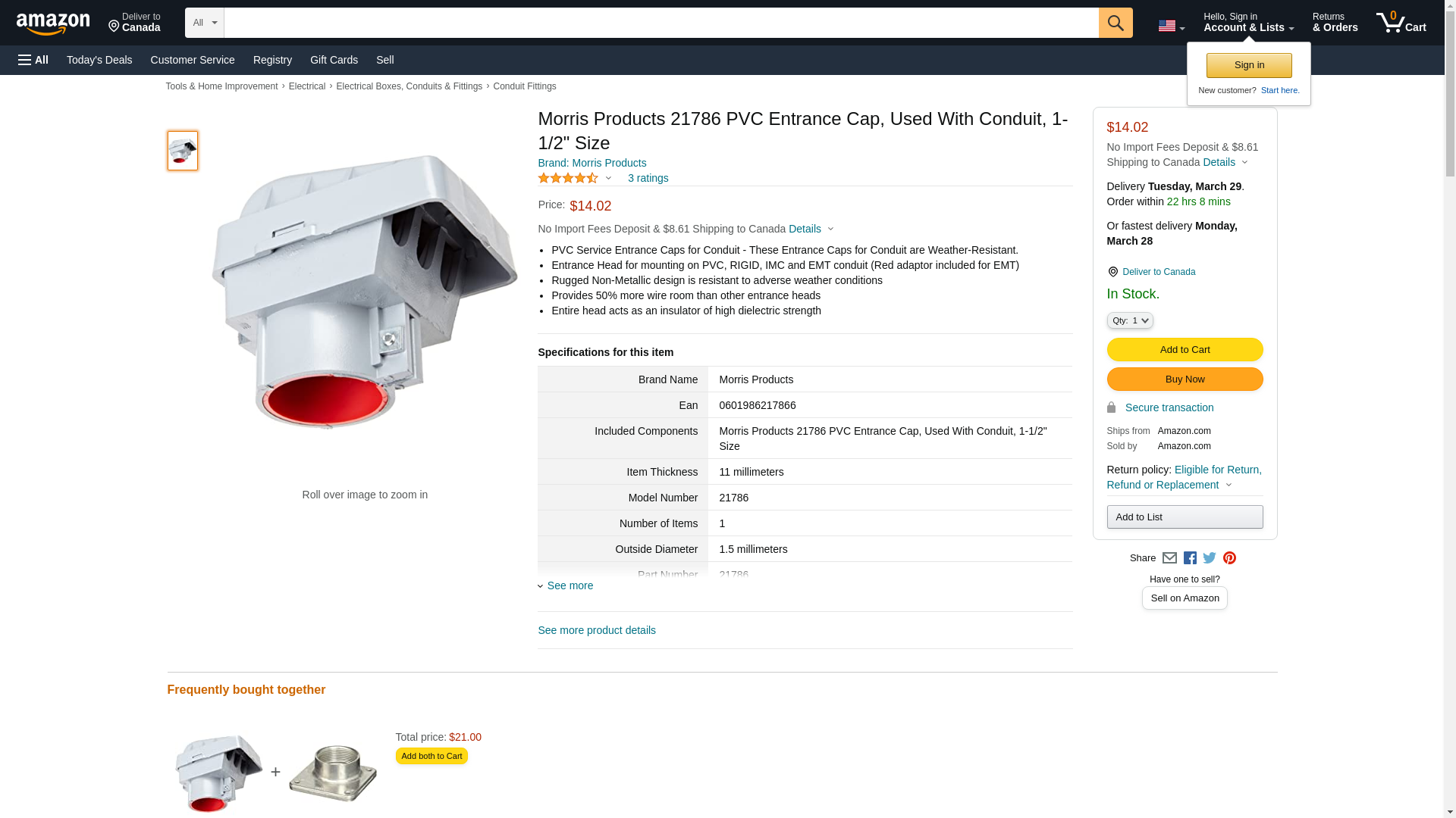 Morris Products 21786 PVC Entrance Cap, Used With Conduit, 1-1/2" Size