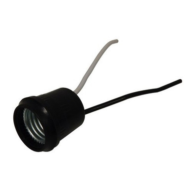 Features: Used in temporary string lighting appplications Pigtail Type Medium Base Weatherproof Lampholder Two #14, 6 inch Leads, One Black and One White Includes a rubber gasket that fits securely around the bulb neck to ensure water does not enter the socket Single Circuit 660 Watt Accepts up to 150W lamps 250 Volt Black Right Handed Thread