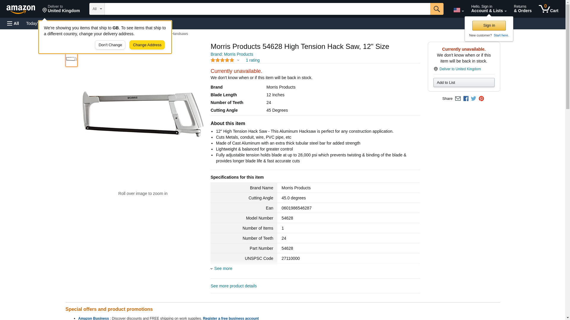 Morris Products 54628 High Tension Hack Saw, 12" Size