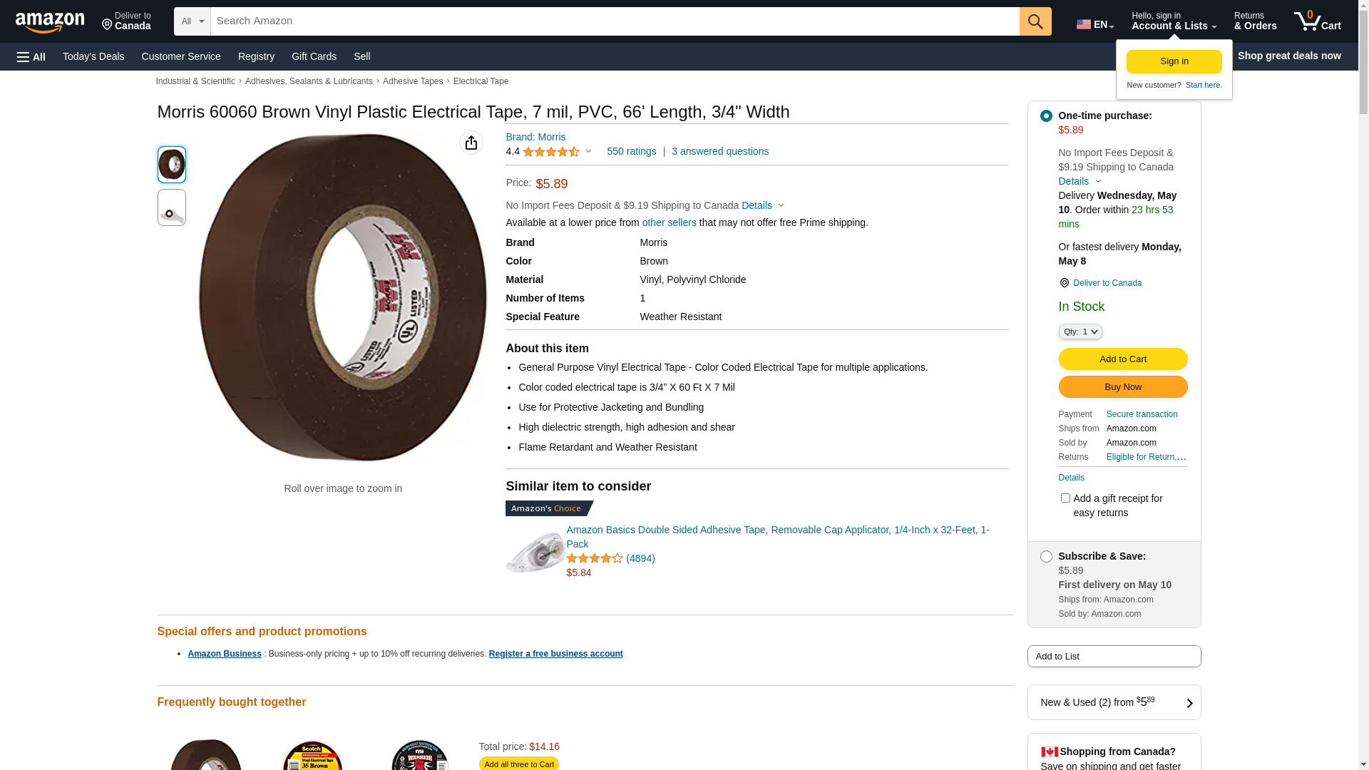 <p><strong>Brand Name, Full Length Electrical Tape, 60 Feet Each Roll, by Morris Products, a Leader in Electrical and Lighting Supplies.</strong></p> <p>Included in this bundle are 10 rolls of the best quality general purpose Vinyl Electrical Tape by Morris Products, a leading brand of electrical and lighting supplies. This bulk pack electric tape is a must in any electricians tool box or supply van.</p> <p>Comparable to 3M 1700 & 1400.</p> <p><strong>Not a cheap generic off brand electric tape. Available in 10 colors. This listing is for a 10 pack of Brown.</strong></p> <p>General Purpose Vinyl Electrical Tape features include:</br> - Color coded electrical tape is 3/4” X 60 Ft X 7 Mil</br> - Use for Protective Jacketing and Bundling</br> - High dielectric strength, high adhesion and shear</br> - Flame Retardant and Weather Resistant</br> - Resistant to acids, alkalis, chemicals, oils, moisture, sunlight and corrosion</br> - Rated 600V</br> - Lead Free</br> - UL 510 and CSA 22.2 Listed</br></p> <p><strong>General Purpose Vinyl Electrical Tape Included In this Bulk Pack (with the Manufactures Part Numbers):</strong></p> <p> Morris Products Item # 60060 - Color: Brown<br><p>Great buy and savings when buying this 10 pack, compared to one pack.</p> <p><strong>All colors available in this series (only ONE color is included in this listing):</strong></p> <p> Morris Products Item # 60000 - Color: Black<br> Morris Products Item # 60010 - Color: Red<br> Morris Products Item # 60020 - Color: White<br> Morris Products Item # 60030 - Color: Yellow<br> Morris Products Item # 60040 - Color: Green<br> Morris Products Item # 60050 - Color: Blue<br> Morris Products Item # 60060 - Color: Brown<br> Morris Products Item # 60070 - Color: Orange<br> Morris Products Item # 60080 - Color: Gray<br> Morris Products Item # 60090 - Color: Violet<br></p>