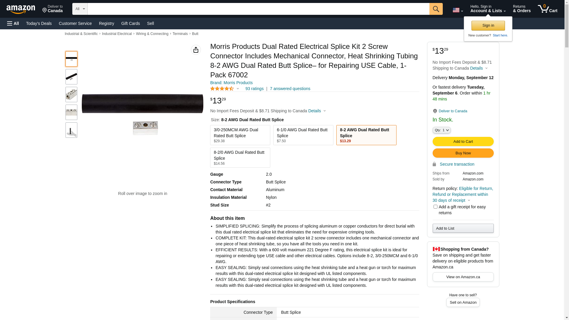Morris Products Dual Rated Electrical Splice Kit 2 Screw Connector Includes Mechanical Connector, Heat Shrinking Tubing 8-2 AWG Dual Rated Butt Splice– for Repairing USE Cable, 1-Pack 67002