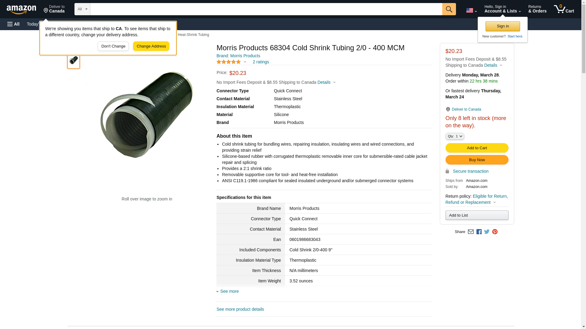 Morris 2/0-400 Conductor Range x 9" Cold Shrink Tubing 68304. ✅Morris authorized distributor ✅. ☎ (800) 884-5767 Mon-Fri 8:00 AM - 5:00 PM ET or order online 24/7