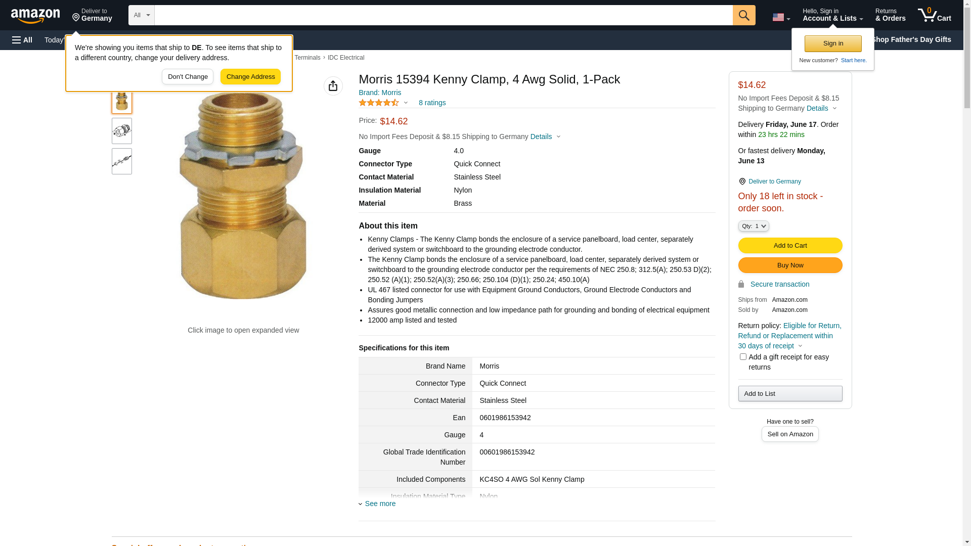 Morris 15394 Kenny Clamp, 4 Awg Solid, 1-Pack