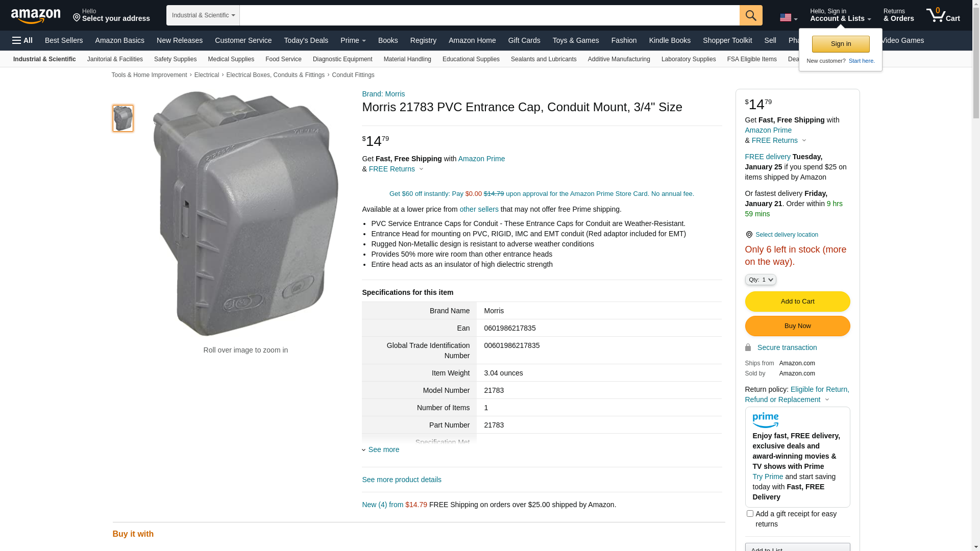 Morris 21783 PVC Entrance Cap, Conduit Mount, 3/4" Size. PVC Service Entrance Caps for Conduit - These Entrance Caps ...