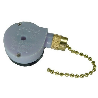 | Feature | Pull Chain Brass SPTDT 2 Speed Off-On-On - Ceiling Pull Chain switch for lights or fans. |