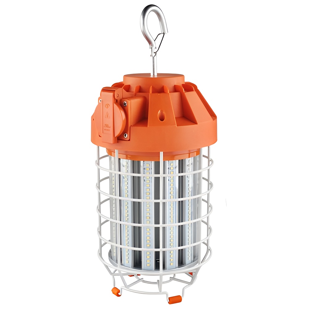 LED Temporary HiBay 120W 5000K LED Temporary HiBay for Job Sites Construction Projects and Temporary Site Lighting Features. Temporary indoor illumination commonly used on construction jobsites attics and garages. Replaces 175W 400W Metal Halide Temporary Site Lighting. Integral LEDs Included No Lamp Required. 50000 Hr Life Expectancy. Polycarbonate Lens. Die Cast Aluminum Housing and Metal Cage. 10 Cord and Plug. Molded Plug and Integral Molded Receptacle. IP64 Rated. cULus ListedSpecifications. Accepts Photocontrol Housing No. Certifications cULus. Color Temperature 5000. Dimmable No. Equivalent Watts 400. Finish Orange. Fixture Type Temporary Lighting. Height 1314. Lamp Type LED. Lumens 11000. Material Die Cast Aluminum Housing and Metal Cage Polycarbonate Lens. Photocontrol Included No. Temperature Rating 4 deg F to 113 deg F. Volts 120. Watts 120. Width 412