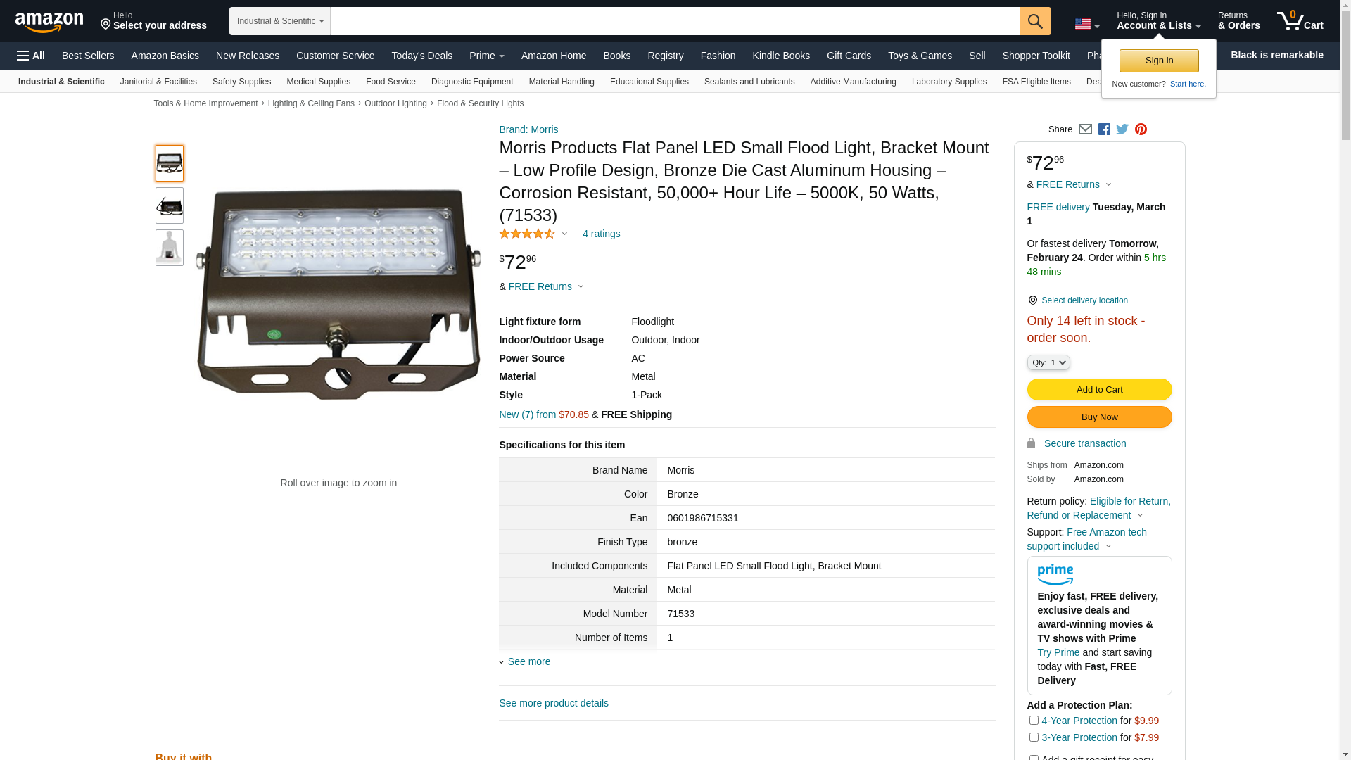 Morris Products Flat Panel LED Small Flood Light, Bracket Mount – Low Profile Design, Bronze Die Cast Aluminum Housing – Corrosion Resistant, 50,000+ Hour Life – 5000K, 50 Watts, (71533)