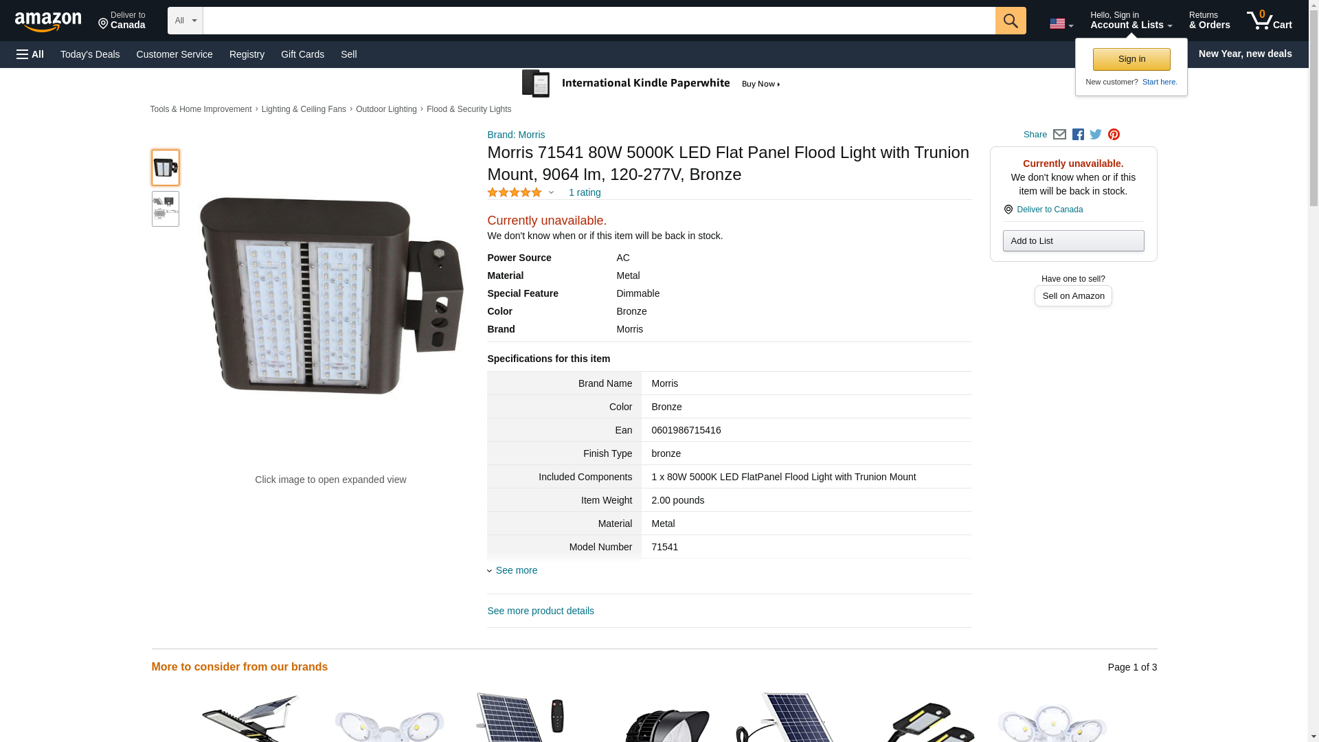 Morris 71541 80W 5000K LED Flat Panel Flood Light with Trunion Mount, 9064 lm, 120-277V, Bronze