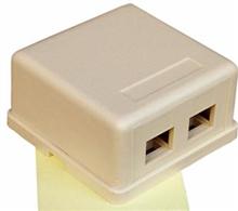 Ivory Double Gang Surface Mount Box for Keystone Jack Features: Keystone Surface Mount Box Housing Only Accepts Cat3/5/5E/6/RJ-45 Keystone Jacks Adhesive Backing Snap on 2 Piece Base and Cover UL Listed