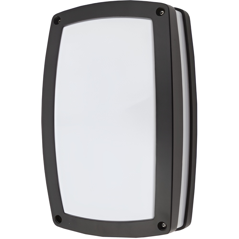LED Rectangular Bulkhead Lighting 4000K Full Lens Black Housing Use LED Bulkhead Lighting to brighten outdoor areas efficiently Features. Use for exterior accent lighting. Integral Heat Sink Releases the Heat Efficiently to maintain the life of LEDs LED Driver. Corrosion Resistant Die Cast Aluminum Housing. Superior Architectural Black Powder Coat Finish. Full Lens. Polycarbonate Lens. Stainless Steel Hardware. Photocell Not Included. 50000 Hour LED Life Expectancy. IP54NEMA 3 Dust Water Tight. ETL Energy Star listed. 5 Year WarrantySpecifications. Operation Temperature 40F to 131F. Voltage Rating 120V. R9 10. Beam Angle 120. Color Temperature 4000K Neutral White. CRI 80. Power Factor 099