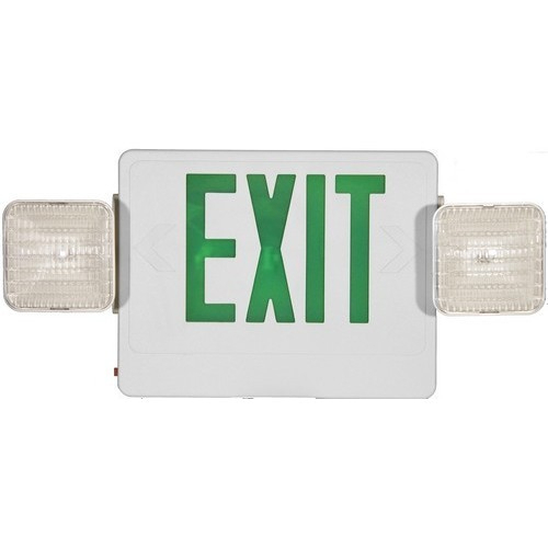Combo LED Exit & Incandescent Emergency Light Green LED White Housing (Pkg of 10)