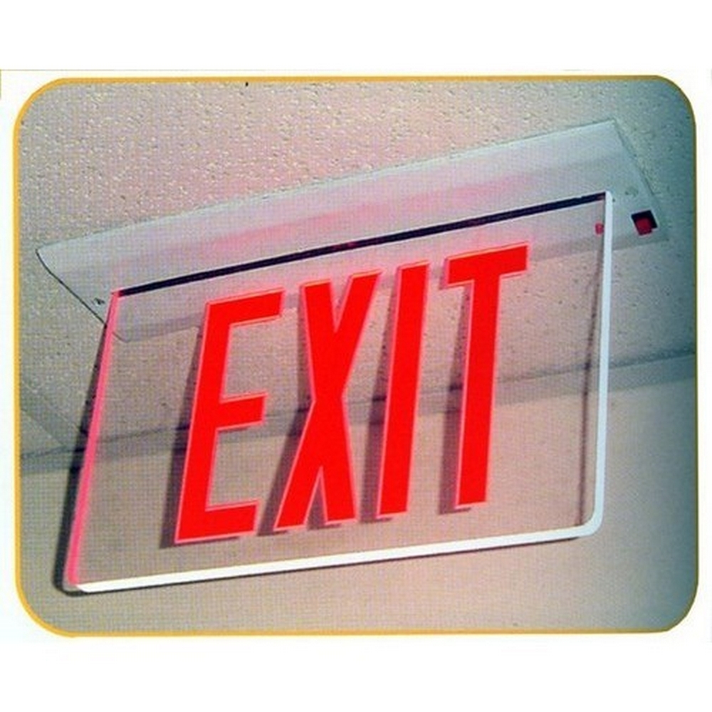 Recessed Mount Edge Lit Exit Sign Single Sided Legend Red or Green LED Aluminum, White, or Black Housing - A stylish, Edge Lit LED Exit Sign. Universal Mount LED Edge Lit Exit Signs have Compact, low-profile design Energy consumption of less than 5 watts for battery backup units Emergency battery backup model is completely self-contained Infield installation directional indicators Premium Grade extruded Aluminum housing AC on indicator light and test switch Ni-Cad battery 120/277 Volt operation Solid State electronics and charger board UV stabilized ultra clear acrylic panel Premium high output ultra bright LED’s Single Side Legend Only(Must purchase Double Sided Face Plate Separately) UL Listed 3 Year Warranty Order Qty of 1 = 1 Piece