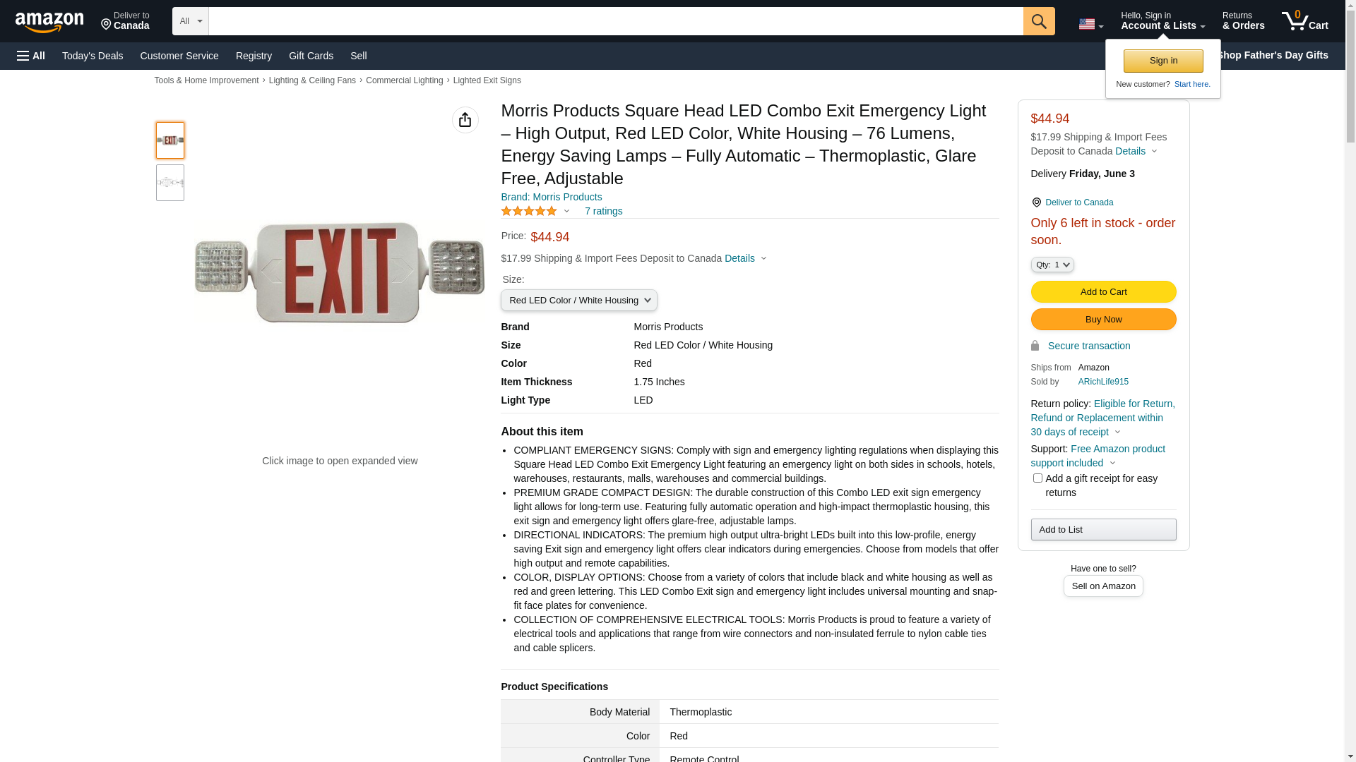 Morris, 73432, Red/White Square Head LED Combo Exit/Emergency Light, High Output Type Features: Long Life Energy Saving LED Lamps Completely Self-Contained Fully Automatic Operation Push to Test Switch Automatic Low Voltage Disconnect (LVD) 120 or 277 VAC Operation Charge Rate/Power On LED Indicator Light Energy Consumption of Less than 4 Watts for Red letters and Less than 2 Watts for Green Letters Injection-Molded, UL 94 V-O Flame Retardant, High Impact, Thermoplastic Housing Fully Adjustable Glare-Free LED Lamps Heads Rotate 180 degree + for Maximum Field Flexibility Universal Mounting Canopy for Top or Back J-box Installation and 2 Snap-fit Face Plates Field replaceable chevron directional indicators Integral wiring channels to facilitate installation 3.6-Volt Sealed Ni-Cad Rechargeable Maintenance-Free Battery Environmentally-Coated, Solid State Charger Input Current: .22A 120V .10A 277V Input Wattage: 1.8W Standard; 2.5W Remote Capable Model #73442, 73443, 73444 and 73445 have Remote Capability for up to 2 Additional Standard Remote Lighting Fixtures 2 heads - 4 hours operation 3 heads - 2 hours operation 4 heads - 1.5 hours operation