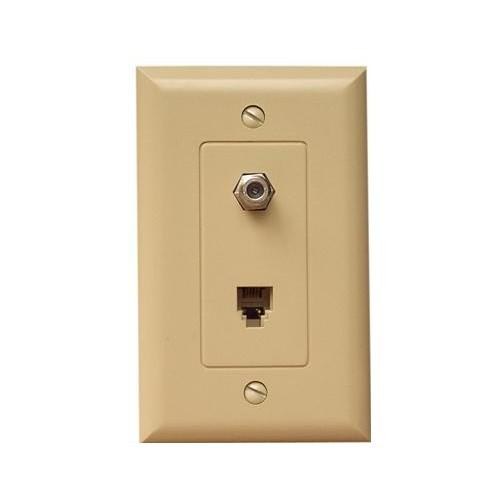 1 Piece Decorative Single RJ11 4 Conductor Phone Jack & Single F Connector Wallplate (Pkg of 10)