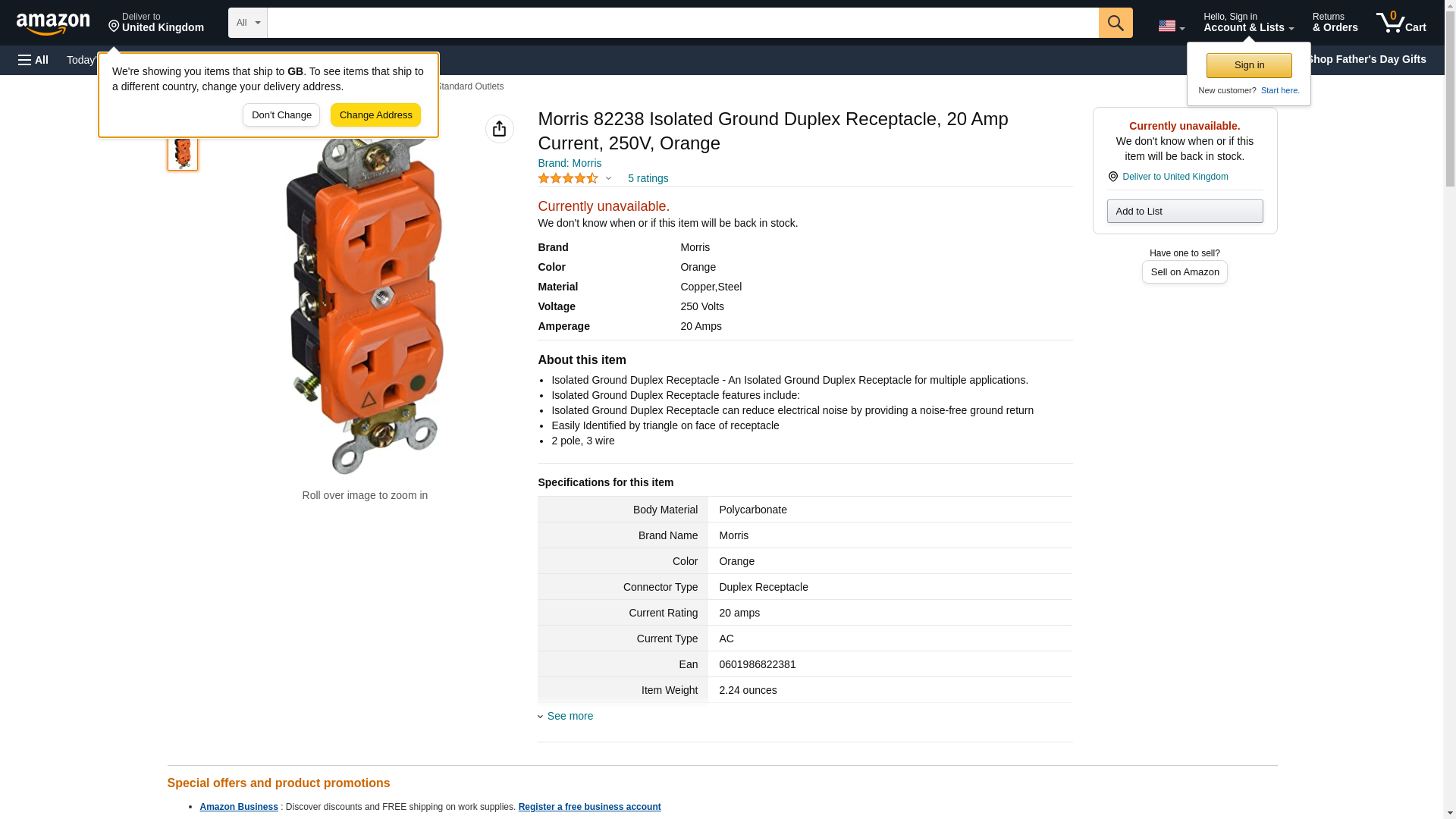 Morris 82238, 20Amp 250V Orange Isolated Ground Duplex Receptacle (Pack of 24 pcs)