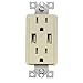 Decorative USB Chargers & Tamper Resistant Duplex Receptacle 20A-125V Ivory (Pkg of 3)