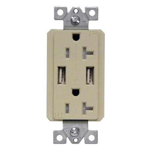 Decorative USB Chargers & Tamper Resistant Duplex Receptacle 20A-125V Ivory (Pkg of 10)