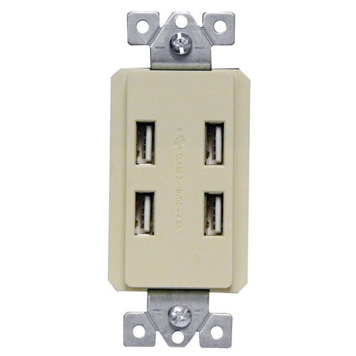 Decorative USB Charger Stations 4 Port 20A - 125V White (Pkg of 10)