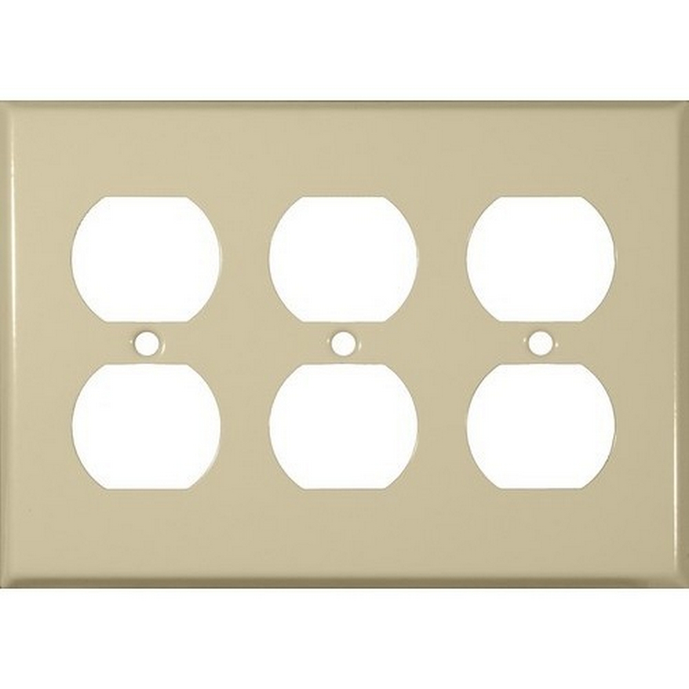 Morris 83233 Painted Steel Wall Plate, 3 Gang, Duplex Receptacle, Ivory