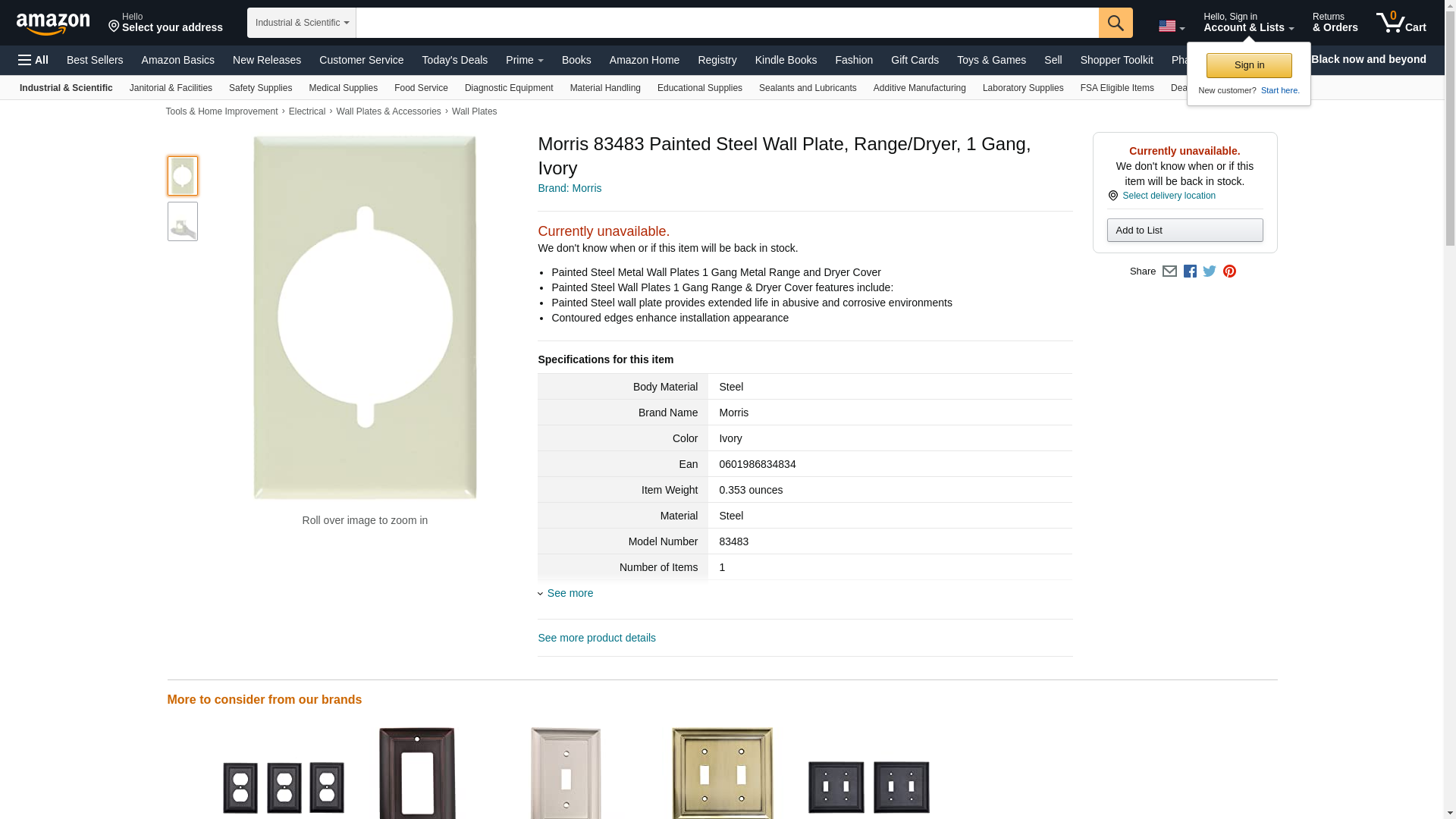 Morris 83483 Painted Steel Wall Plate, Range/Dryer, 1 Gang, Ivory
