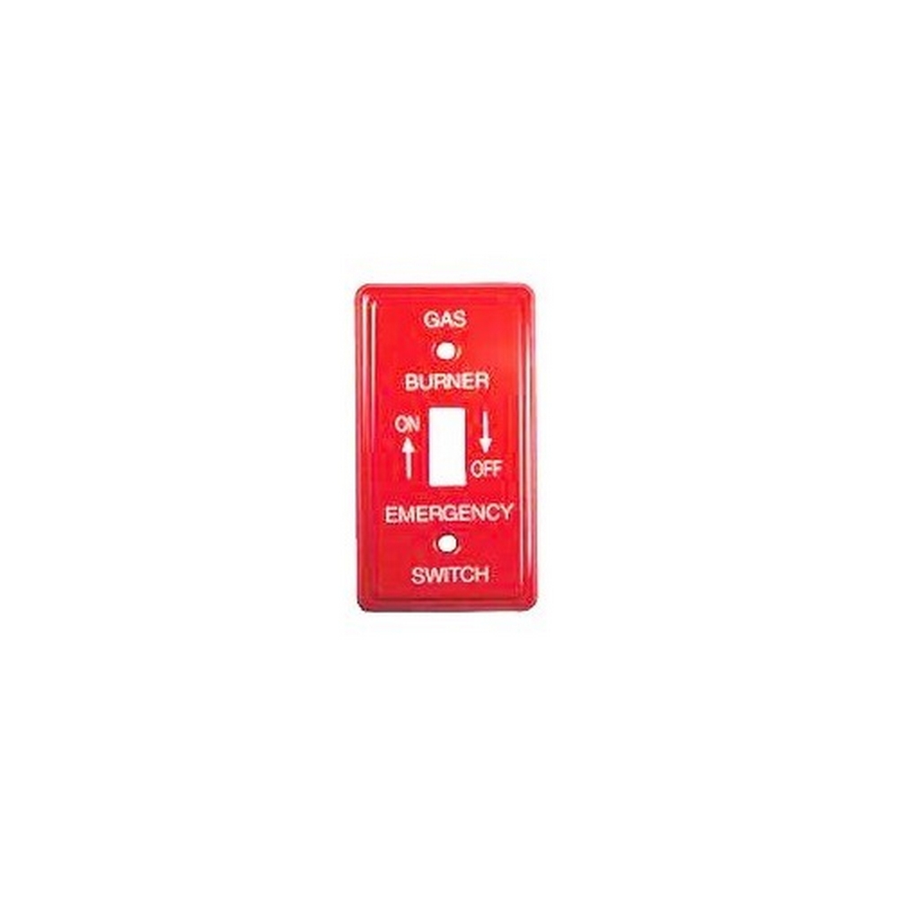 Utility Gas Type Emergency Metal Switch Plate Features: Wall plate provides extended life in abusive and corrosive environments Metal wall plate is painted red with silk screened white letters UL listed