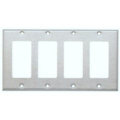 - 304 Stainless Steel Wall Plates 4 Gang Decorative/GFCI - This 304 Stainless Steel Wall Plates 4 Gang Decorative/GFCI is perfect for commercial and decorative residential applications.