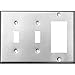 - 304 Stainless Steel Wall Plates 3 Gang 1 GFCI 2 Toggle Switches features include: