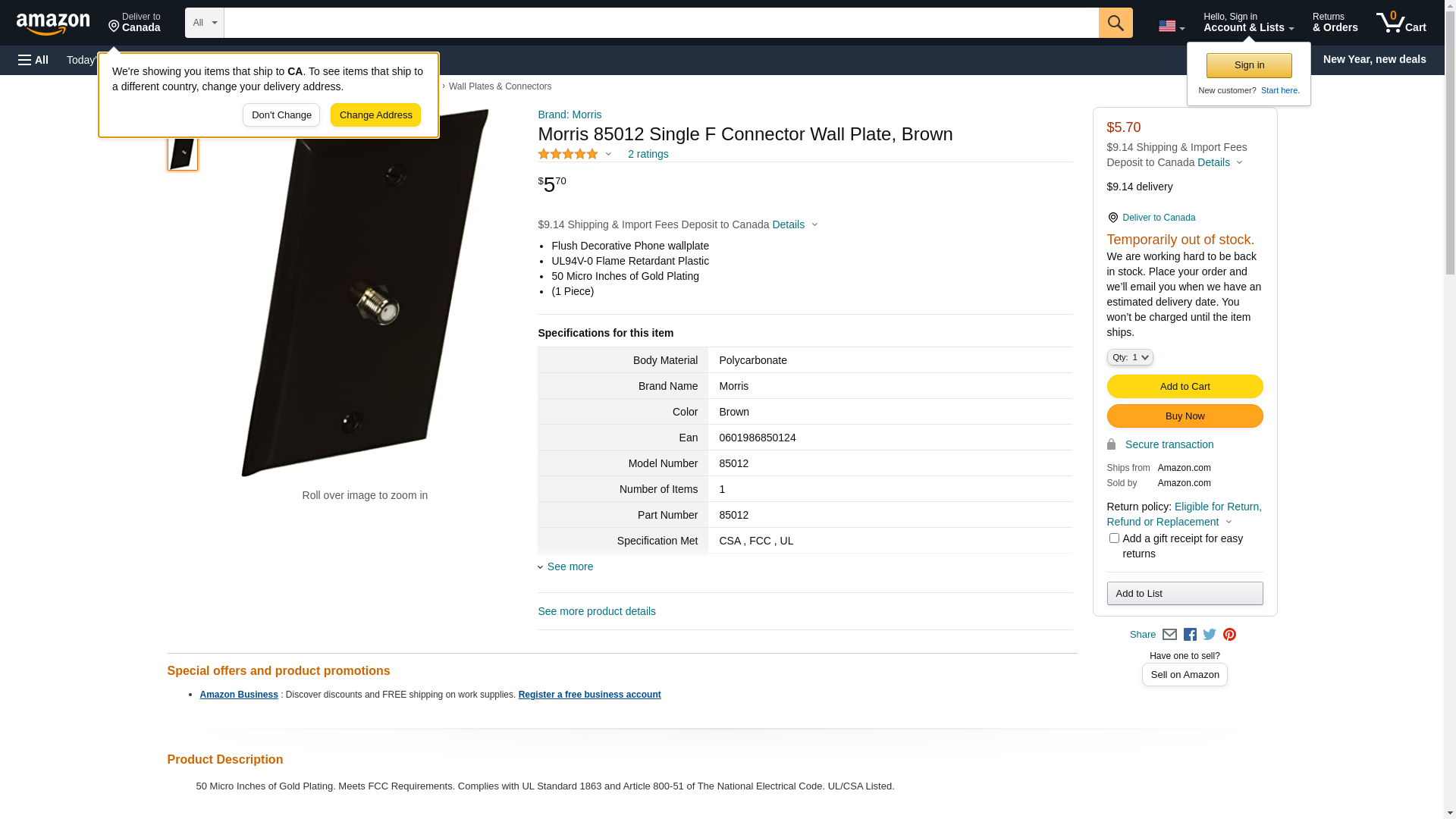 Morris Brown Single F Connector Wallplate 85012. ✅Morris authorized distributor ✅. ☎ (800) 884-5767 Mon-Fri 8:00 AM - 5:00 PM ET or order online 24/7