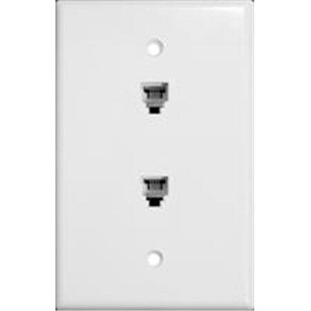 White Midsize Dual RJ11 4 Conductor Phone Jack Wallplate Features: Midsize plate can be used to cover imperfections made when cutting hole for box in drywall Flush Decorative Phone wallplate UL94V-0 Flame Retardant Plastic 50 Micro Inches of Gold Plating Meets FCC Requirements Complies with UL Standard 1863 and Article 800-51 of The National Electrical Code UL/CSA Listed