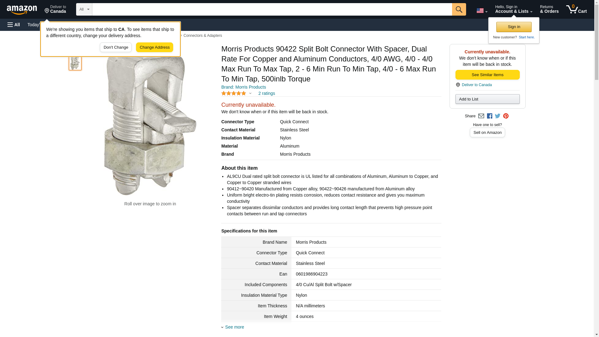 MORRIS 90422 4/0 Copper/Alum Split Bolt w/Spacer
