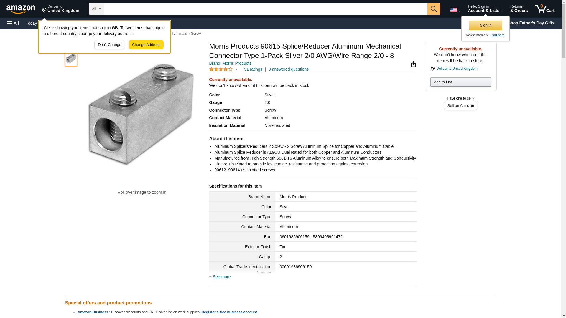 3 Pack - Brand Morris Model 90615 Product Splice/Reducer Aluminum Mechanical Connector Type with 2 Screws and 2/0- Number 8 Wire Range