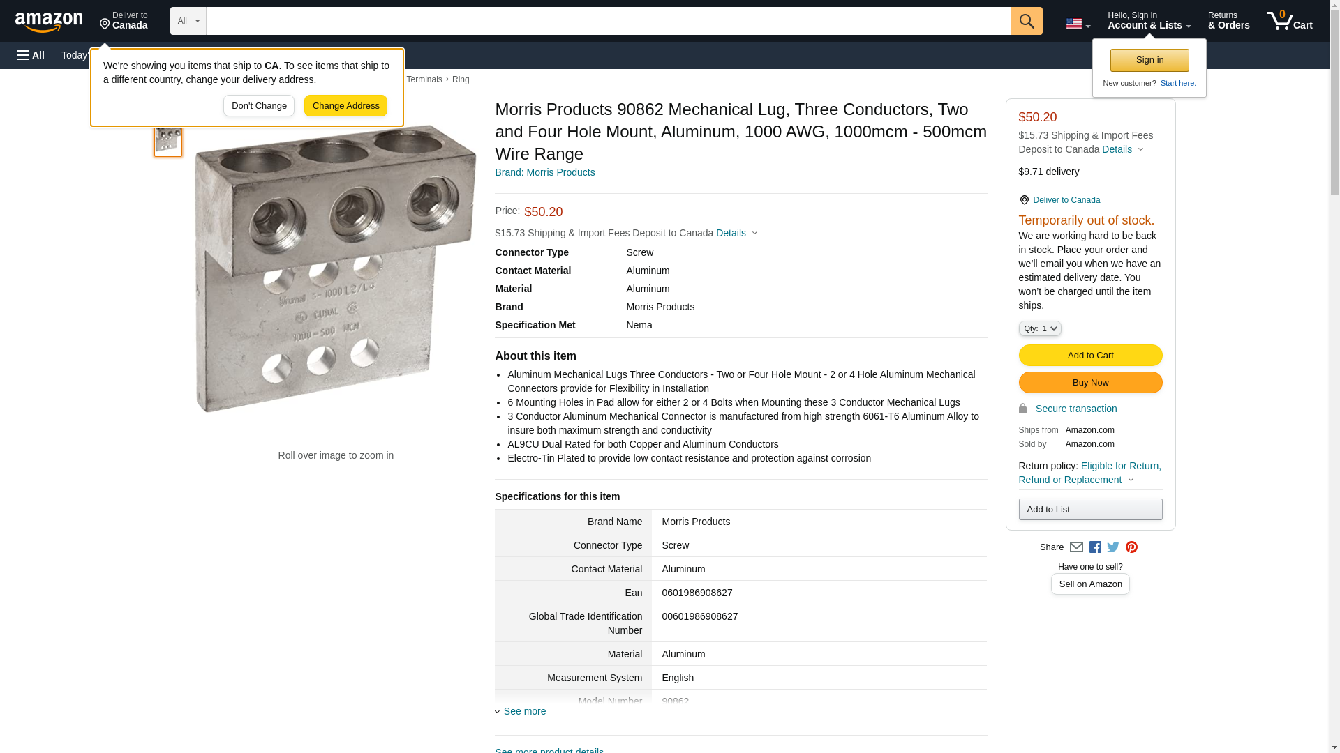 Morris Products 90862 Mechanical Lug, Three Conductors, Two and Four Hole Mount, Aluminum, 1000 AWG, 1000mcm - 500mcm Wire Range