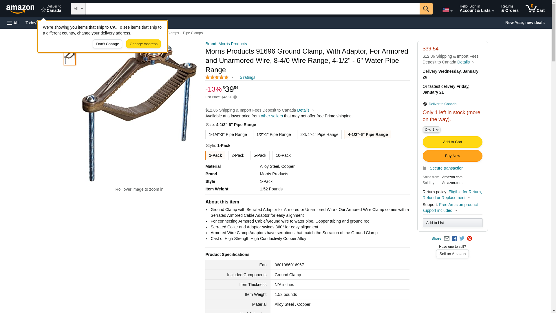 Morris Products 91696 Ground Clamp, with Adaptor, for Armored and Unarmored Wire, 8-4/0 Wire Range, 4-1/2" - 6" Water Pipe Range, 1-Pack