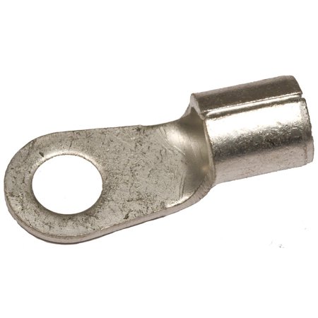 Non-Insulated Wiring Ring Terminals for electrical work. NONINSULATEDWIRINGTERMINAL MATERIAL: Hi-Strength Electrolytic Copper Electro-Tin Plated Brazed Seam Serrated barrel with brazed seam provides excellent electrical contact & resistance to pull-out forces MAXIMUM ELECTRIC CURRENT: 22 AWG - 9 Amp, 20 AWG - 12 Amp, 18 AWG - 17 Amp, 16 AWG - 18 Amp, 14 AWG - 30 Amp, 12 AWG - 35 Amp, 10 AWG - 50 Amp, 8 AWG - 70 Amp, 6 AWG - 95 Amp, 4 AWG - 125 Amp, 2 AWG - 170 Amp 150°C 600 Volts Max Wiring terminal is cULus Listed Dimension Measurements = Inches Minimum Order Qty = 100 <br /> <br />
