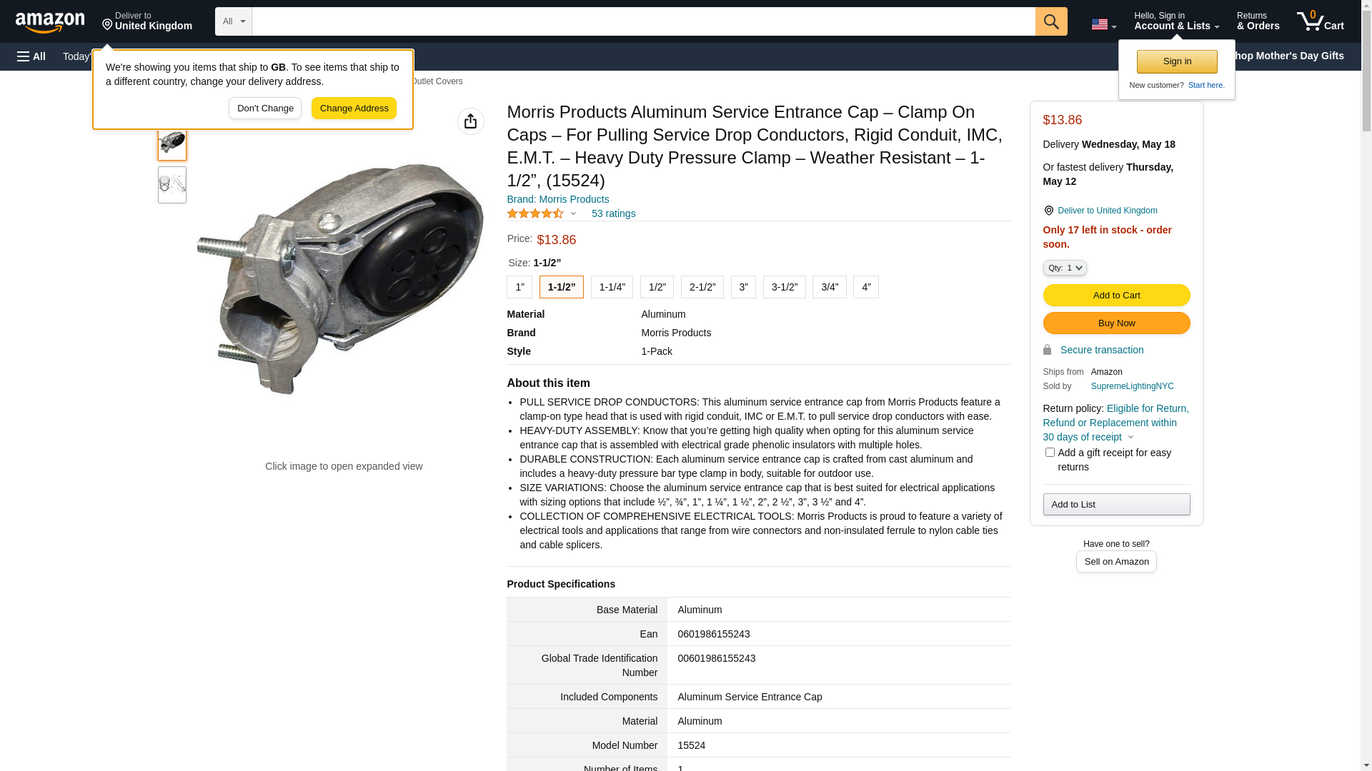 - PACK OF 3: Save with this multi pack, includes 3 pieces Morris Products item 15524, UPC 601986155243, Aluminum Service Entrance Cap - Clamp On 1-1/2"