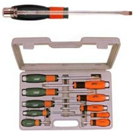 10 Piece High Impact Screwdriver Set - Very durable high-impact 10 Piece Screwdriver Set.Features. High Impact 10 Piece Screwdriver Set has been ergonomically designed.. The shaft is continuous from top to bottom has been created using impact-resistant and cold-resistant steel material made from CRM ova. Use on any metal or non-metal such as steel wood porcelain mineral..etc. Can use it as a punch chisel screwdriver pry bar. Can use with a wrench for more torque. It can take 3000G impact of hammer. Slotted 316 x 4 in. 14 x 12 in. 14 x 5 in. 516 x 6 in. 38 x 7 in.. Phillips 1 x 3 in. 2 x 12 in. 2 x 4 in. 3 x 5 in.. 18 in. Pickup Tool. Case Quantity - 12 sets. Item Weight - 5.5 lbs.