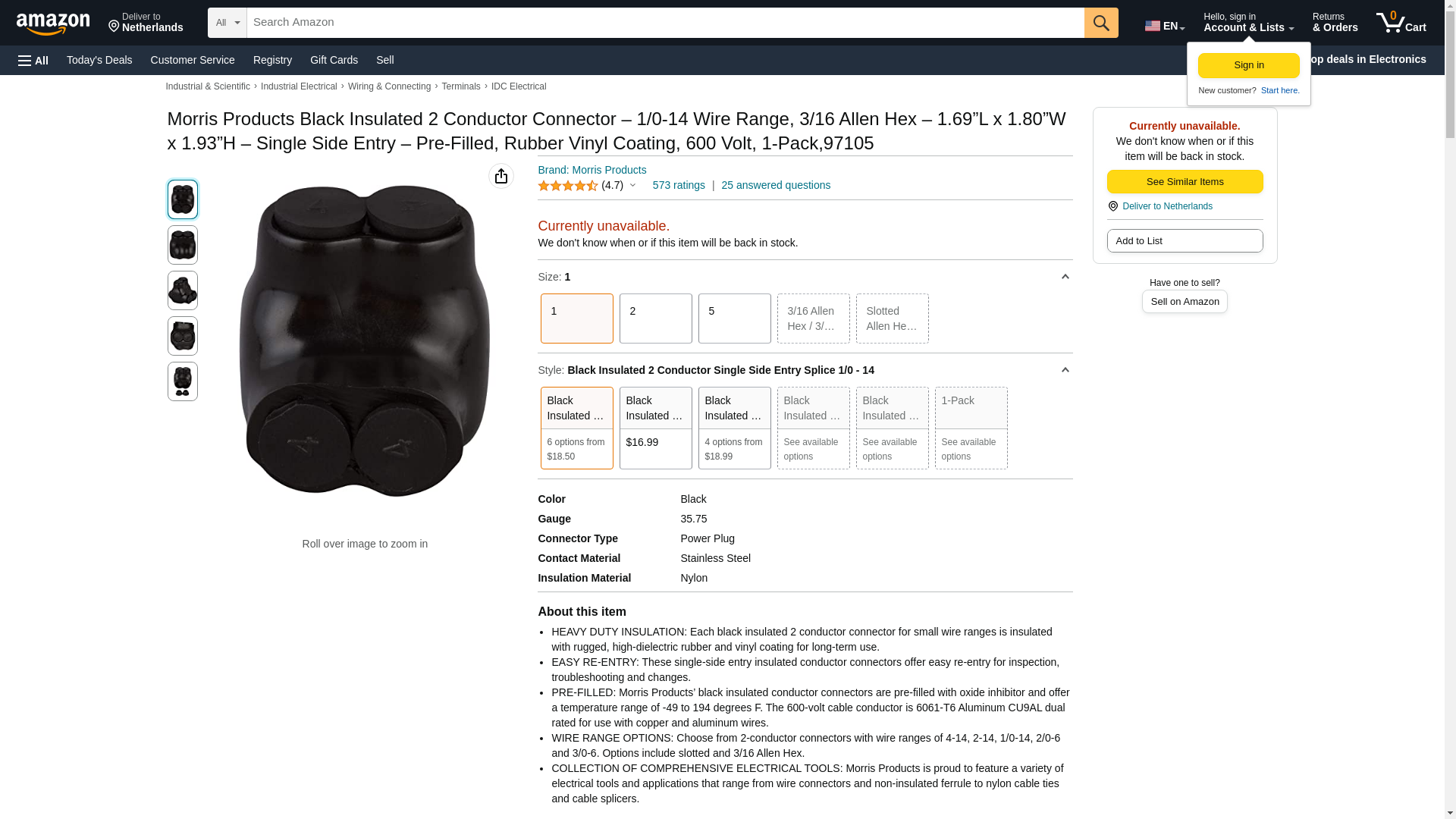 Morris #1/0-#14 Black Insulated 2-Conductor Side Entry Splice 97105. ✅Morris authorized distributor ✅. ☎ (800) 884-5767 Mon-Fri 8:00 AM - 5:00 PM ET or order online 24/7