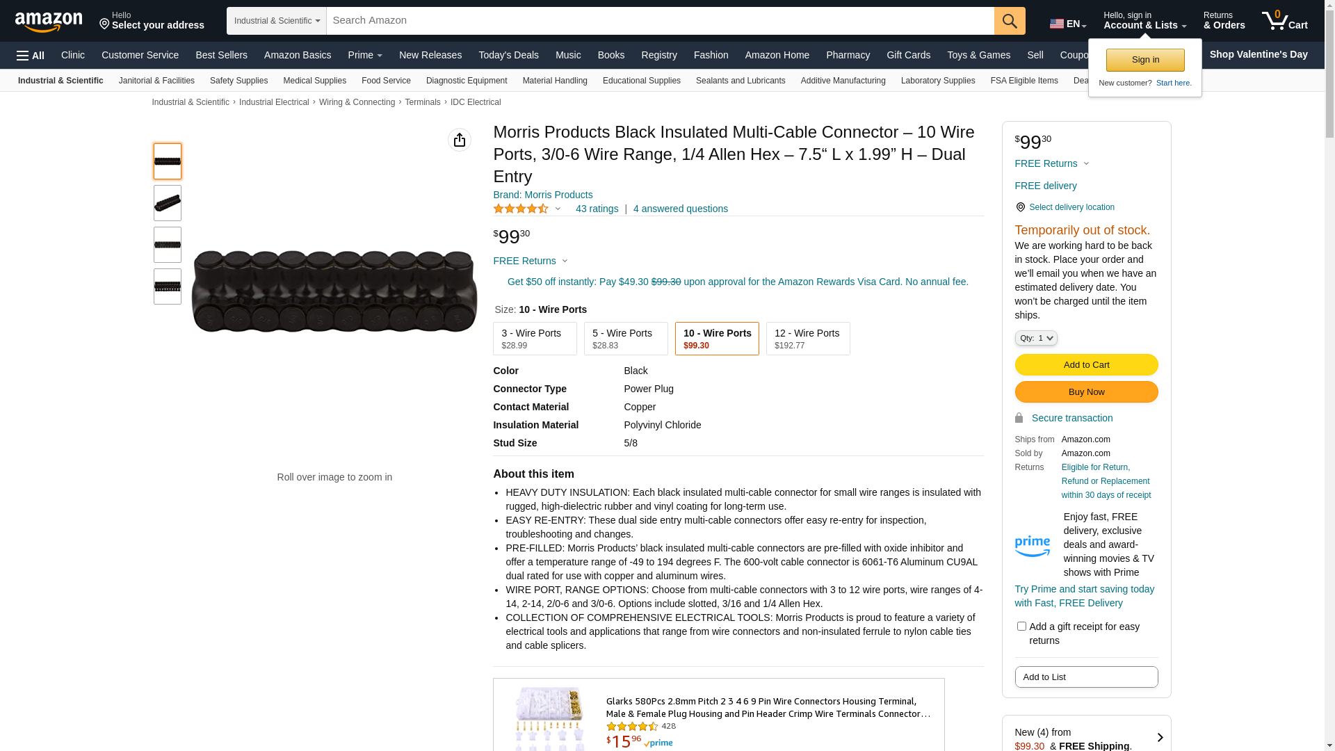 Morris Products Black Insulated Multi-Cable Connector – 10 Wire Ports, 3/0-6 Wire Range, 1/4 Allen Hex – 7.5“ L x 1.99” H – Dual Entry