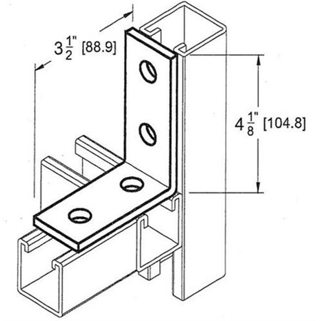 17634 Features: -Corner angle. -Box quantity: 25. Generic Specifications: -Corner angle with 4 Hole 3 way. Generic Dimensions: -Durable corner angle is zinc-plated 1-0.63'' wide x 0.25'' thick. -Holes are 0.56'' diameter, 0.81'' center to edge on 1-0.44'' centers. Dimensions: Overall Product Weight: -0.85 Pounds.