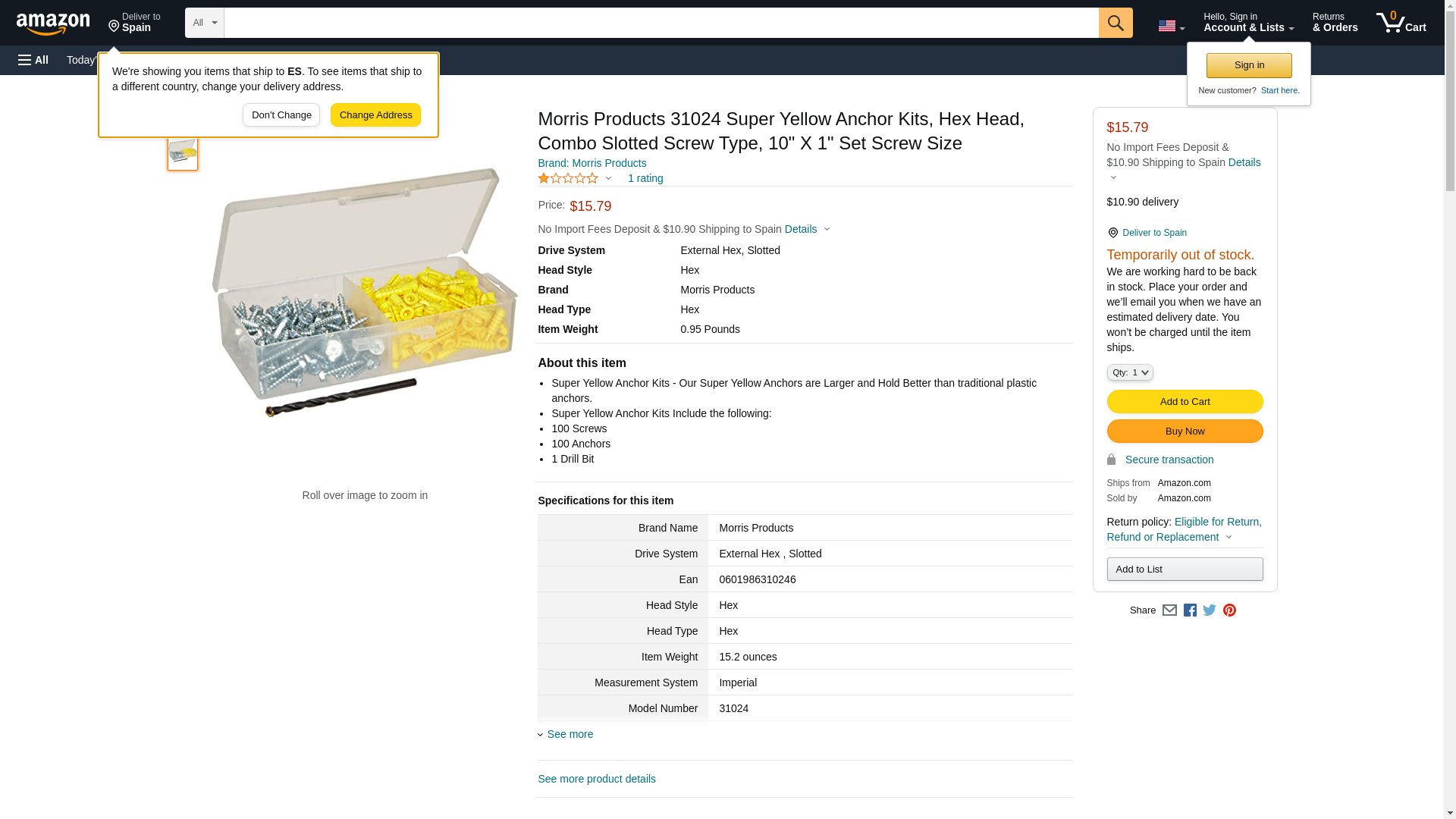 Morris Products 31024 Super Yellow Anchor Kits, Hex Head, Combo Slotted Screw Type, 10 X 1 Set Screw Size (2)