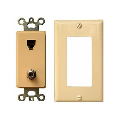 | Feature | 2 Piece Decorative Single RJ11 4 Conductor Phone Jack & Single F Connector Wallplate - A 2 Piece Phone/Cable Jack for home or office. |