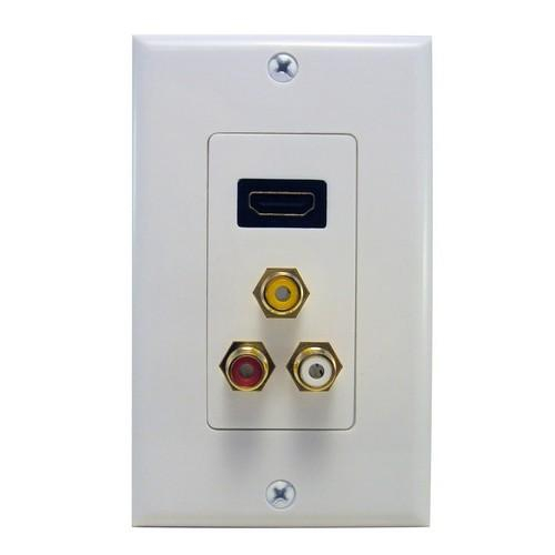 - Combination HDMI Plate & Three RCA Connectors (R,W,Y) Home Enterainment WallPlate - Combination HDMI Plate & Three RCA Connectors (R,W,Y) Home Enterainment WallPlate for Hi Definition Television Applications.