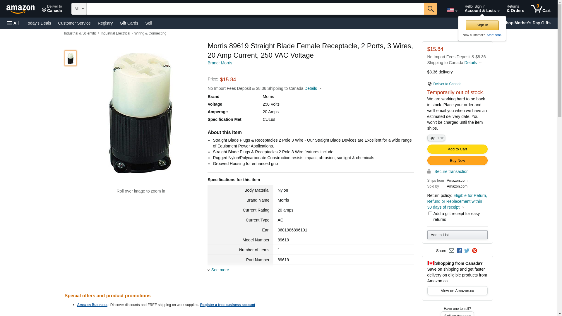 Morris 20A 250V Female Straight Blade Plug 89619. ✅Morris authorized distributor ✅. ☎ (800) 884-5767 Mon-Fri 8:00 AM - 5:00 PM ET or order online 24/7