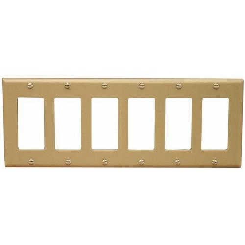 Morris, 81785, Ivory Lexan Wallplate with 6 Gang Medium Decorative/GFCI Features: Lexan medium wall plates are highly resistant to impact, abrasion, oil, acids and fading. Ideal for use in high abuse areas Smooth surface, easy to clean. Rounded at the edges to prevent injuries and wall damage. Supplied with matching painted metal mounting screws Mounting screws individually wrapped in a small plastic bag to protect plate from scratches Specification Grade: Meets all current federal specifications Medium size Lexan wall plates meet standards NEMA and ANSI Flammability Rating UL94V-2 UL Listed